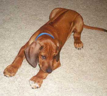 We recently made an addition to our family! Jake is a 10 week old Rhodesian Ridgeback. Currently he weighs in at 23 lbs. and within seven months he should be topping the scales at 95lbs.